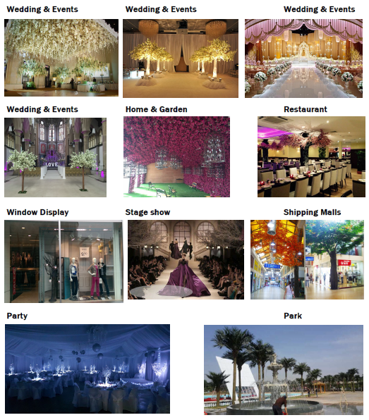 | Uses | Wedding and Events decoration, also Plaza, Hotel, Resturant, Airport, Waiting room, Office, Home and Garden landscaping, Window shows, Party decorating |